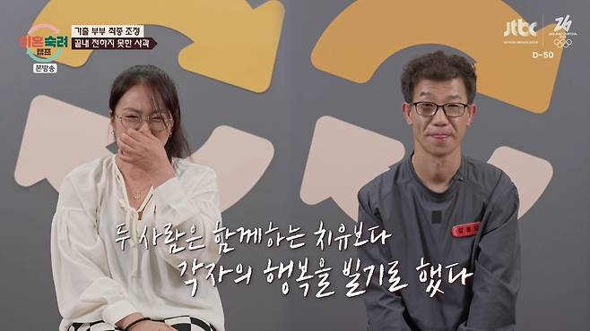 하지만 아내는 '이혼'을 선택했다. 캠프 입소 당시 남편이 이혼의사가 더 높고, 오히려 아내가 결혼생활 유지를 선택했던 것과는 정반대의 결과였다. 아내의 생각지 못한 답변에 남편은 "네가 그런식으로? 황당했다"는 속마음을 밝히며 큰 충격을 감추지 못했다.