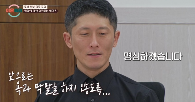 이에 남편 측은 그동안의 발언에 대해 깊이 반성하고 있으며, 가사조사 이후 욕을 끊는 등의 노력을 감안해 위자료를 주고받지 않는 것을 제안했다. 또한, 앞으로 존댓말을 써주길 바란다는 아내의 요구에 존댓말 연습을 하는 남편의 어색한 모습이 폭소를 자아내기도 했다.