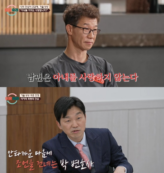 마지막 폭행에 대한 기억이 서로 달랐던 부부의 설전이 이어지던 중, 아내는 "남편이 무서워서 집에 들어가지 못했다"라며 마지막 가출의 이유를 솔직하게 털어놓았다. 이에 박민철은 남편 측 변호인임에도 "그걸 얘기하셔야 한다"라고 조언하며, 아내를 향한 안타까움을 감추지 못했다.