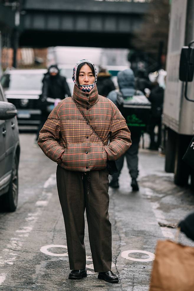 체크 패턴 은 이미 많은 겨울 아우터에서 찾아볼 수 있습니다. 하지만 패딩 위에 올라갔을 땐 전혀 다른 얼굴을 보여주죠. 울 코트의 클래식함과 비교해 보다 경쾌하고 도시적인 인상을 주기 때문입니다. 마이크로 깅엄처럼 섬세한 패턴부터 거친 플래드까지, 체크 패턴 패딩은 겨울 옷장의 분위기를 환기하는 역할을 합니다. 늘 입던 패딩이 지루해졌다면, 가장 부담 없이 변화를 줄 수 있는 선택지이죠.