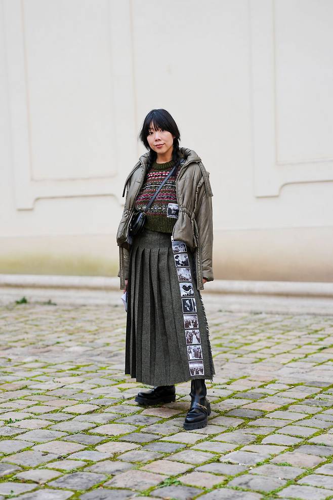 유틸리티 패딩 은 기능적 요소를 숨기지 않습니다. 큼직한 포켓, 메탈 하드웨어, 카키와 블랙 위주의 컬러 팔레트까지, 모두 실용성을 전제로 설계된 디테일이죠. 그렇기에 오히려 스타일링에서는 반대의 요소가 필요합니다. 프레피한 니트, 플리츠 스커트처럼 단정한 아이템과의 조합이 대표적이죠. 대비가 분명할수록 패딩의 매력은 더욱 선명해진다는 사실을 기억하세요!