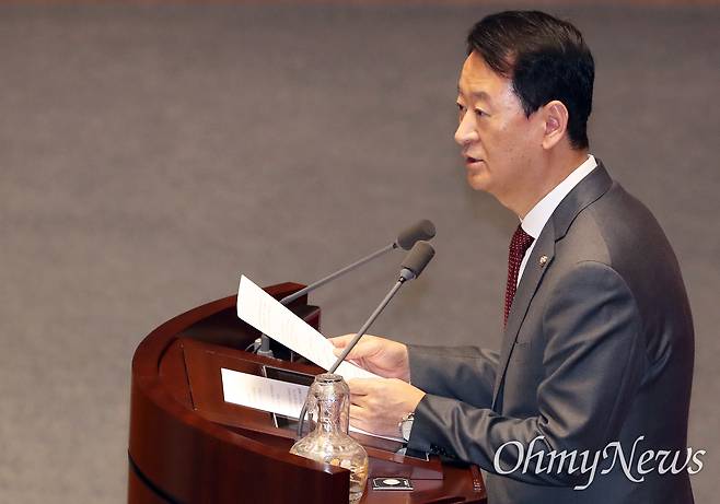| ▲ 최은석 국민의힘 의원이 3월 13일 국회 본회의에서 상법 개정안 반대 토론을 하고 있다. |