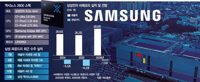 업계는 파운드리 사업 또한 빠르게 회복될 것으로 내다보고 있다. 업계 최초로 2나노 게이트올어라운드(GAA) 공정이 적용된 엑시노스 2600이 탑재된 갤럭시 S26이 공식 출시되면 삼성전자 파운드리는 미세공정과 양산 수율 능력을 동시에 입증하게 된다. 테슬라와 애플에 이어 퀄컴 등 빅테크의 추가 수주도 이어질 수 있다는 평가다. 업계 관계자는 “엑시노스 2600이 안착되면 파운드리 사업의 실적 회복이 빨라져 2027년 흑자 전환 가능성이 커진다”고 설명했다.