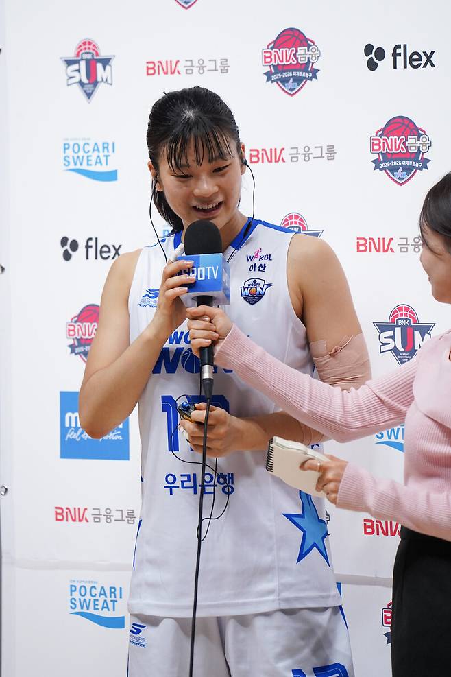 변하정은 19일 부산사직체육관에서 열린 BNK금융 2025~2026 여자프로농구 부산 BNK과의 원정 경기에서 10점 5리바운드 2스틸로 활약했다.