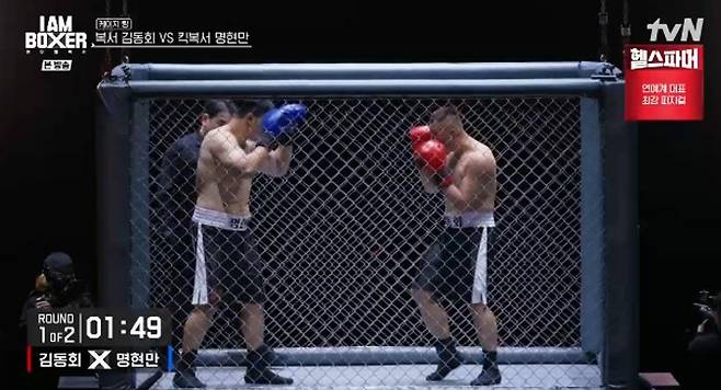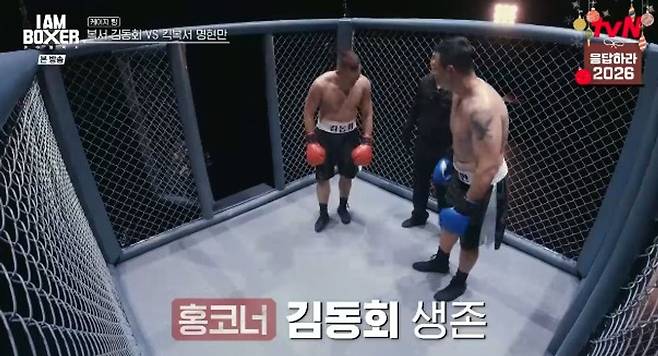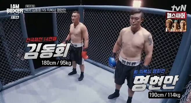 19일 tvN ‘아이 엠 복서’ 5회에서는 세 번째 파이트, 세 개의 링이 계속되는 가운데 전(前) 킥복싱 헤비급 챔피언 명현만과 전국체전 14연패 김동회의 케이지 링 매치가 펼쳐졌다.