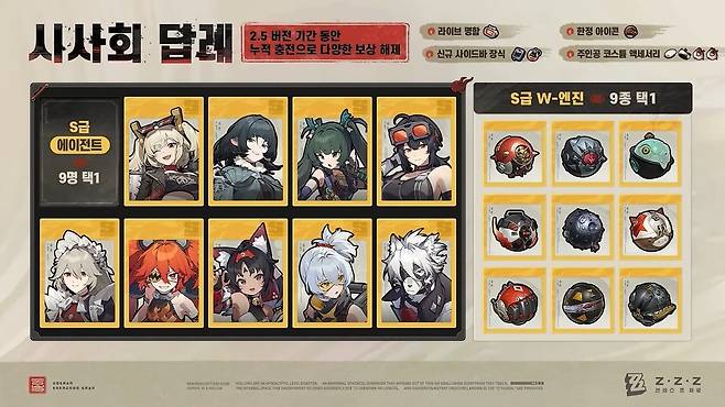 이외 엽빛나 코스튬를 포함한 다양한 신규 콘텐츠와 이벤트가 공개됐는데 팬들의 배를 터지게 만들 젠레스 존 제로 2.5 버전의 상세 내용은 아래와 같다.