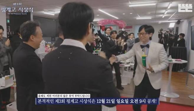20일 온라인 채널 '뜬뜬'에선 '[선공개] 세 번째 핑계고 시상식 시작 10분 전ㅣ12/21 (일) 오전 9시 업로드'라는 제목의 영상이 업로드 됐다.