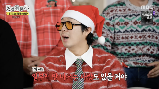 20일 오후 방송된 MBC ‘놀면 뭐하니?’에서는 팬미팅 단체무대에서 부를 캐럴송 연습에 들어간 ‘인사모(인기 없는 사람들의 모임)’ 멤버들의 모습이 전파를 탔다.