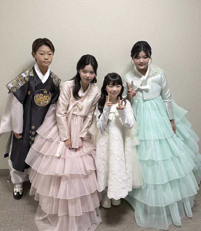 폭풍성장한 채 한복을 곱게 차려 입고 등장한 삼남매. 설아 양은 "처음 '슈퍼맨이 돌아왔다' 나왔을 때는 정말 어렸는데, 저랑 수아는 내년에 벌써 중학생이 된다"고 밝혀 눈길을 끌었다. 이어 수아 양은 "저랑 설아는 골프 대회에 나가서 나란히 1, 2위를 했다. 시안이는 유소년 축구대회에서 MVP를 받았다"고 자랑, 놀라운 스포츠 DNA를 뽐냈다.