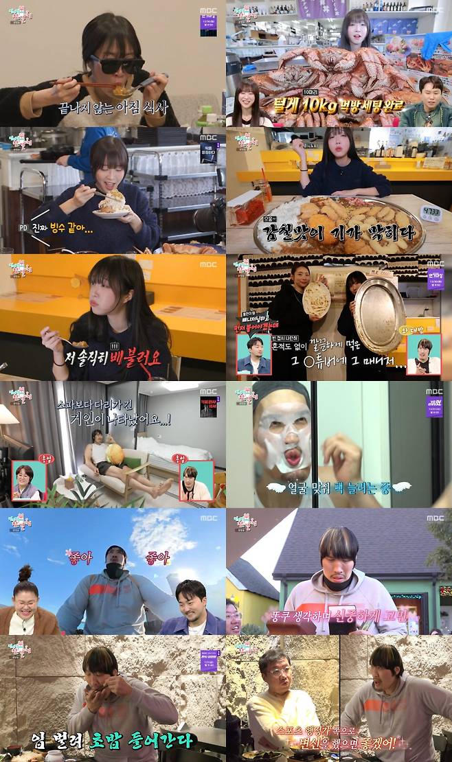 이어 삿포로 장외시장으로 털게를 털러 간 쯔양. 보통 한 마리에 3~4인분이라는 제철 털게를 무려 10마리나 주문했다. 산더미처럼 쌓인 털게를 흡입하고 털게회, 대왕 된장국까지 주문해 먹는 쯔양의 모습에 시장 상인들과 손님들이 가던 길을 멈추고 시선을 집중하는 가하면, 쉴 새 없이 털게를 손질하고 주문 음식을 내온 식당 셰프들은 기립 박수를 보내는 진풍경이 펼쳐지기도. 이후 숙소로 돌아와 잠시 쉬는 시간에는 '소화제 정식'이라며 라면과 크림파스타를 먹어, 참견인들 모두 '기 빨린' 표정을 감추지 못했다. 전현무는 먹짱 개그맨들을 언급하며, "그 친구들도 쉬는 시간엔 자요"며 탄성을 내기도 했다.