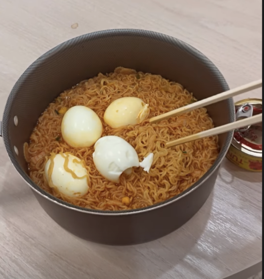 공개된 사진 속에는 보기만 해도 배부른 '고칼로리' 라면이 담겨 있다.