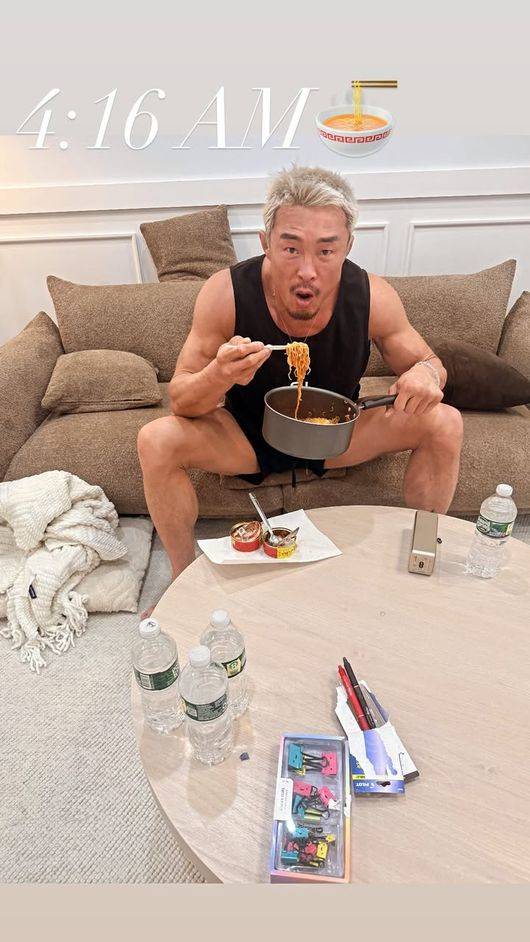 추성훈, 새벽 4시 거실서 민소매 차림으로 ‘라면 폭주’…“계란 4개+참치캔까지?”
