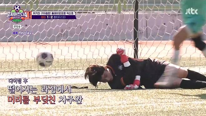 차주완, 선방 중 착지 미스→기절… 안정환은 경기 중 그라운드 난입 ('뭉찬4')