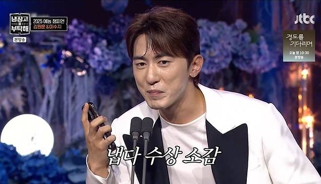 앞서 이수지가 수상한 후 김원훈은 무대에 올라 냅다 수상소감을 했고, 김원훈은 "무관소감이라고, 상도 없이 수상 소감 한 건 제가 처음일 것"이라고 너스레를 떨었다.