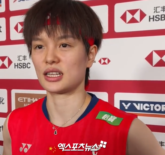 중국 SNS인 웨이보엔 왕즈이가 믹스트존(공동취재구역) 인터뷰 도중 울음을 터트리며 손으로 눈물을 닦는 모습이 게재됐다. 바로 옆에 안세영이 흰색 원피스 유니폼을 입고 담담하게 질문에 답변하는 사이 왕즈이는 말을 이어가다가 울고 말았다.