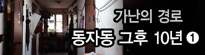 서울에서 가장 가난한 사람들의 동네 중 한곳인 동자동(용산구)은 ‘시간이 고인 공간’이다. 2015년 한 쪽방 건물에서 주민 45명이 한꺼번에 강제퇴거를 당했다. 한겨레는 쫓겨난 그들의 경로를 따라가며 1년(2015년 4월~2016년 5월 추적연재)과 5년(2020년 5월30일 토요판 커버스토리)을 기록했다. 세계가 초고속으로 질주하며 떨군 그들의 ‘10년 뒤 지금’(5부작)을 다시 좇았다. 강산이 열번은 변했을 시간의 속도 앞에서 가난은 독야청청 그대로였다.