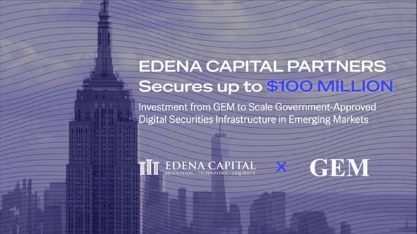 글로벌 디지털증권 인프라 기업 EDENA Capital Partners(이하 'EDENA')가 GEM Token Fund ISA Ltd.로부터 최대 1,500억원(1억 달러) 규모의 투자를 유치했다고 밝혔다.
