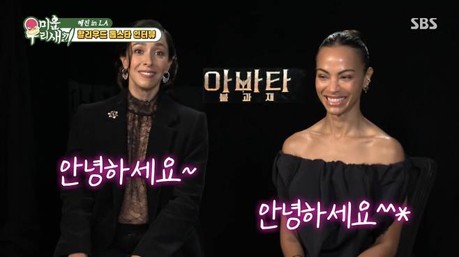 영화 ‘아바타: 불과 재’에서 폭발적인 열연으로 씬을 장악하며 국내외 관객들의 마음을 사로잡은 배우 조 샐다나(네이티리 역), 시고니 위버(키리 역), 우나 채플린(바랑 역)이 모델 한혜진과 만나 특별한 인터뷰를 진행했다. 또한 이번 인터뷰는 SBS 예능 ‘미운 우리 새끼’를 통해 바로 어제(21일, 일) 저녁 9시에 방송되어 시청자들의 눈길을 사로잡았다.