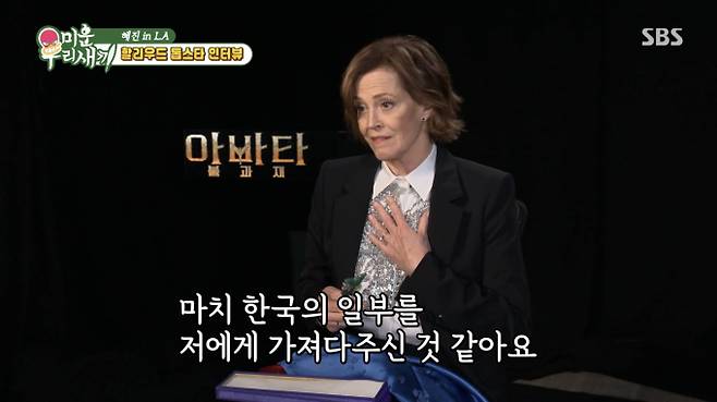 특히 한혜진이 전파한 K-밈을 따라하는 조 샐다나와 우나 채플린의 모습과 배우들을 위해 준비한 비녀 선물을 받고 시고니 위버가 “한국의 일부를 가져다주신 거 같아 감사하다”는 따뜻한 감사 인사를 전하는 모습이 모두 담겨 특별함을 자아냈다.
