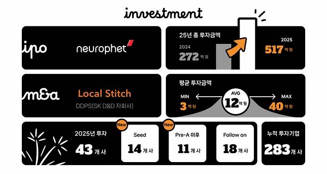 또 11월에는 PEF(기관전용 사모펀드) 라이선스를 취득해 AC(액셀러레이터)-VC(벤처캐피탈)-PE를 모두 아우르는 투자 구조로 확장했으며, 시드 단계부터 스케일업 이후까지 이어지는 성장 흐름을 하나의 체계로 연결하는 기반을 마련했다.