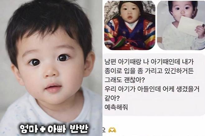 그는 "남편 아기 때랑 나 아기 때 사진인데 내가 종이로 입을 조금 가리고 있긴 하다. 그래도 괜찮냐"라며 "우리 아기가 아들인데 어떻게 생겼을지 예측해달라"고 질문했다. 이어 엄마·아빠를 반반 닮은 버전부터 엄마를 더 닮은 버전, 아빠를 더 닮은 버전까지 총 세 가지 이미지 생성을 요청해 눈길을 끌었다.
