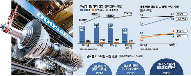 두산에너빌리티의 가스터빈 시장 공략은 가속화할 전망이다. AI발 전력 수요가 급증하면서 수요가 폭증하고 있기 때문이다. 글로벌 시장조사기관 매코이에 따르면 지난 1~9월 전 세계 가스터빈 주문량은 66.1GW(기가와트)로 지난해 같은 기간보다 54% 늘었다. 글로벌 빅3(GE·지멘스·미쓰비시)에 주문하면 5년 뒤인 2030년에 받을 수 있다는 말이 나올 정도다. 회사는 이 같은 조건에서 '납기 1년'과 같은 속도전으로 공략한다는 방침이다.