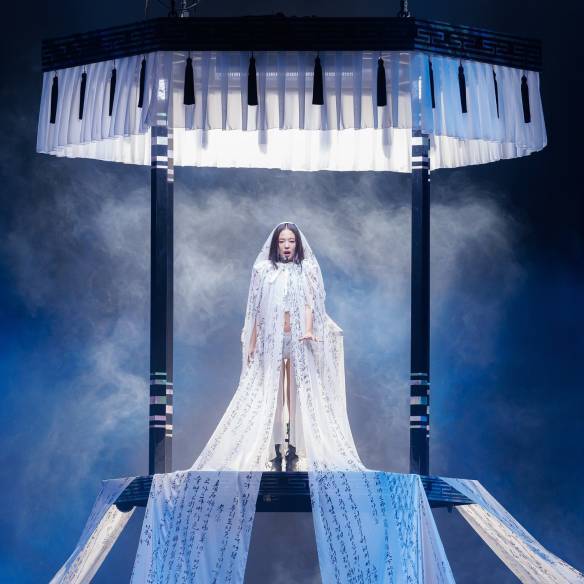 르쥬에 따르면 이번 무대 의상의 가장 큰 영감은 제니가 오랜 시간 품어온 ‘한국’과 ‘한글’에 대한 애정이었습니다. 첫 곡 ‘Seoul City’가 흐르는 순간, 제니는 어둠 속 무대 위에 등장했는데요. 여기서 서울은 배경이 아니라, 오늘의 제니를 만든 출발점으로 조용히 호출되죠. 무대 위에는 약 15미터 길이의 베일이 드리워지는데, 이 베일에는 한글로 기록된 최초의 노래 가사집 ‘청구영언’의 구절이 새겨져 있습니다. 이는 얼굴을 가리기 위한 장치가 아닌, 자신의 기원과 정체성을 마주하는 상징적인 장면인데요. 베일이 걷히며 드러나는 한글은 제니의 이름을 처음 불러준 언어이자, 그녀가 어디에서 출발했는지를 가장 분명하게 보여주는 흔적으로 기능합니다.
