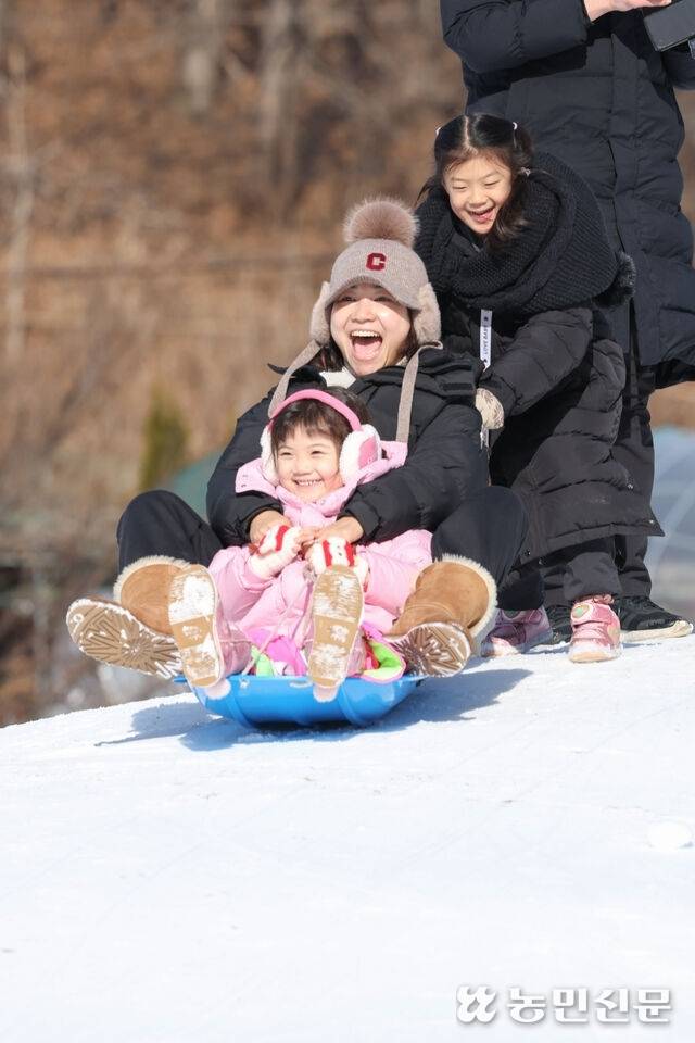 22일 경기도 파주시 법원읍 초리골마을 눈썰매장에서 방학을 맞은 아이들이 영하의 추위에도 눈 위를 달리며 해맑게 웃고 있다. 붉어진 볼과 밝은 표정에는 겨울방학의 설렘이 고스란히 담겨 있다.