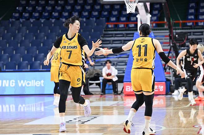 청주 KB는 22일 부산사직체육관에서 열린 BNK금융 2025~2026 여자프로농구 부산 BNK와 원정 경기에서 70-57로 이겼다.