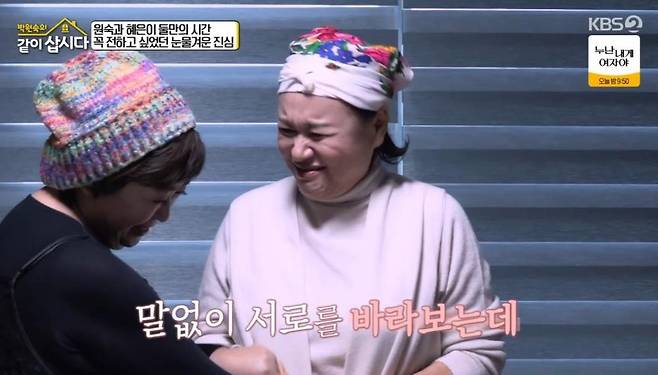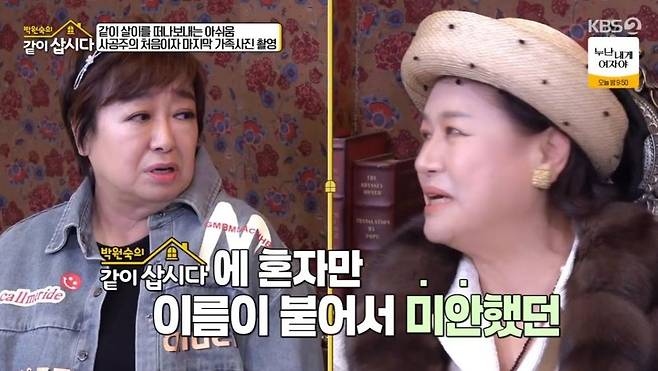 이를 듣던 혜은이는 "저한테는 뭐가 미안하냐"라고 물었고, "네가 싫어할 것 같았다. 내로라하는 혜은이인데 '박원숙의 같이 삽시다'를 해서 미안했다"라고 털어놨다.