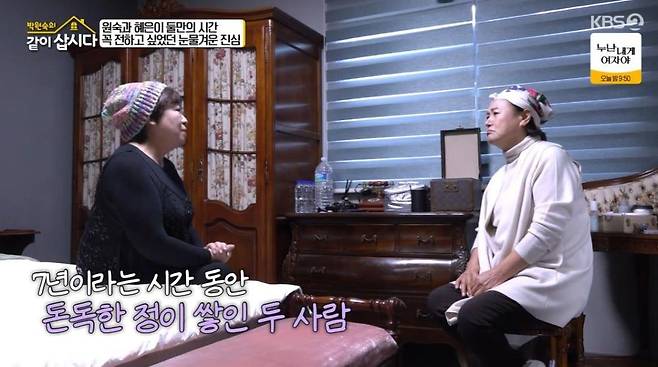 22일 방송된 KBS2 예능 프로그램 '박원숙의 같이 삽시다'에서는 7년의 함께 살이를 마치는 사공주 박원숙과 혜은이, 홍진희, 황석정의 모습이 그려졌다.