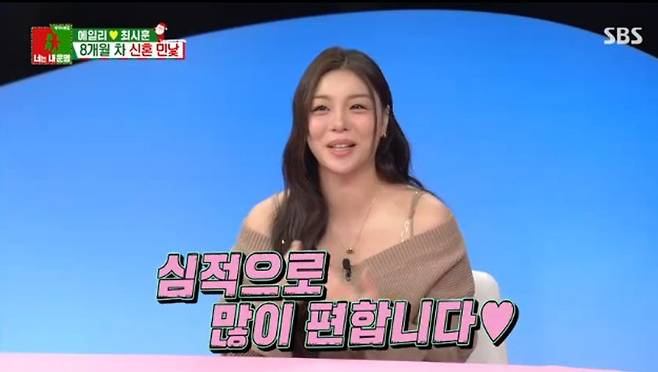 지난 4월에 3살 연하 남편 최시훈과 결혼한 에일리는 얼굴이 편안해 졌다는 말에 “심적으로 많이 편안하다”라고 행복한 결혼생활 중임을 드러냈다.