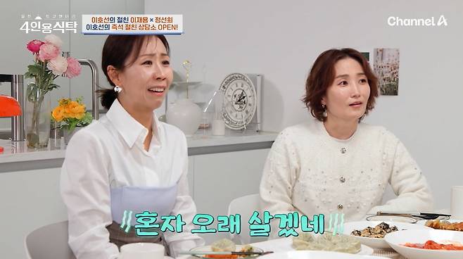 22일 방송된 채널A '절친 토큐멘터리 - 4인용식탁'은 상담가 이호선 편으로, 아나운서 이재용, 코미디언 정선희가 함께했다.