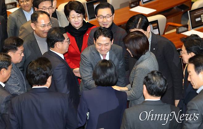 | ▲ 장동혁 국민의힘 대표가 23일 오전 서울 여의도 국회에서 열린 본회의에서 12.3 윤석열 비상계엄 등에 대한 전담재판부 설치 및 제보자 보호 등에 관한 특별법안에 대해 무제한 반대토론을 마친 뒤 동료 의원들로부터 격려를 받고 있다. |