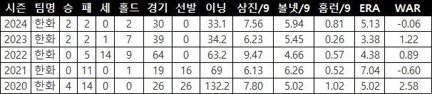 2024시즌 평균자책점 5.13으로 부진했던 장시환은 한화 마운드의 세대 교체 흐름에 밀려 올해는 1군 마운드에 단 한 번도 오르지 못했다.