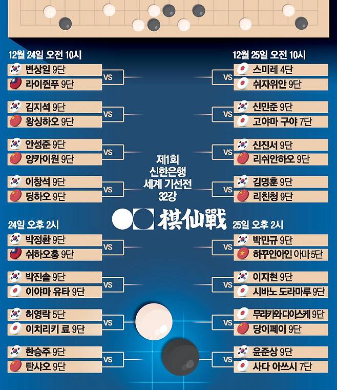 32강전은 24일과 25일 오전 10시와 오후 2시로 나눠 4경기씩 성동구 한국기원 바둑TV 스튜디오와 대국장에서 열린다.