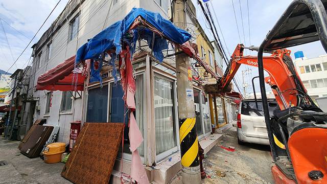 창원 서성동 성매매 집결지가 폐쇄됐지만 지난 2023년부터 이어진 필지 보상 협의가 지연되면서 여전히 성매매 업소였음을 알 수 있는 흔적들이 남아있어 주민들을 불편하게 하고 있다.
