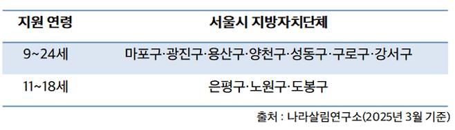 자치구별로 사업 명칭이 제각각인 점도 문제다. 보고서는 사업명에 '생리대' 또는 '생리용품' 지원을 명시하고 있는 곳도 있으나 '보건위생물품 지원사업', '청소년 건강지원 사업' 등의 명칭을 사용하는 곳도 있어 생리대 지원사업인지 명확히 알 수 없는 경우도 적지 않다고 지적했다. 또 생리용품 지원 관련 조례 제정된 자치구를 보면, 지원 연령이 달라 일부 자치구에서는 11~18세로 지원 대상 연령 범위가 더 좁다.