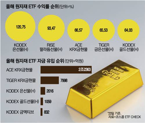 수익률 면에선 은이 금을 압도했지만, 실제 자금은 금 관련 ETF에 가장 많이 유입됐다.