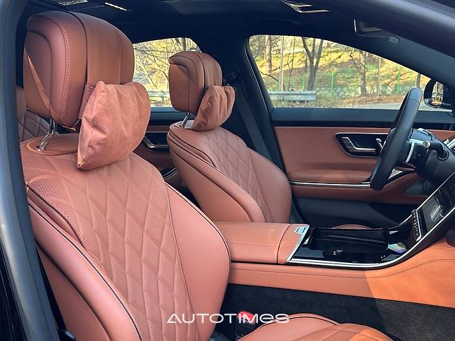 실내로 들어오면 S클래스라는 이름에 대한 의심은 사라진다. 나파 가죽 시트, 부메스터 3D 오디오 시스템을 비롯해 체감 품질을 좌우하는 요소들은 빠짐없이 갖췄다. 소재의 질감, 마감의 밀도, 버튼 하나하나의 조작감까지 모두 익숙한 S클래스의 기준선 위에 있다.