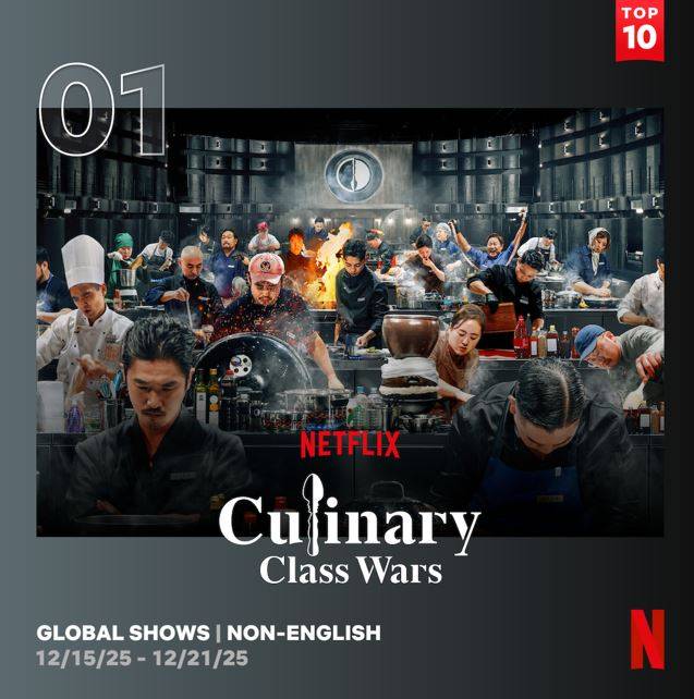 TV쇼(비영어) 부문에서는 넷플릭스 예능 '흑백요리사: 요리 계급 전쟁2'가 동기간 550만 시청수를 기록해 1위를 차지했다. 이전 시리즈에 이어 2년 연속 글로벌 1위에 오르며 여전한 인기를 입증했다.