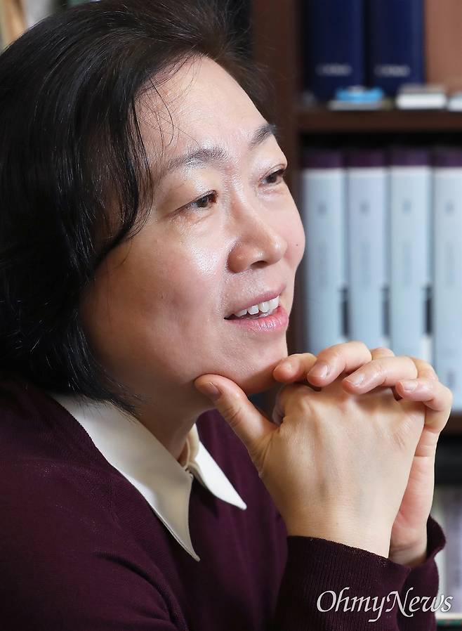 | ▲ 박귀천 이화여대 법학전문대학원 교수가 18일 서울 서대문구 이화여대 법학관 연구실에서 <오마이뉴스>와 인터뷰 하고 있다. |