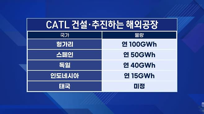 CATL은 헝가리에 100기가와트시(GWh), 스페인에 50GWh의 배터리 공장을 짓고 있고요.