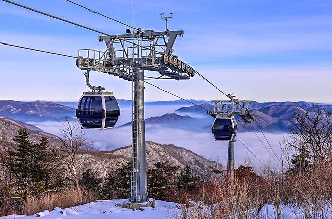 약 20분 동안 이어지는 비행의 백미는 케이블카 내부에서 즐기는 '나만의 풍경화'다. 캐빈마다 설치된 블루투스 스피커에 스마트폰을 연결하고 평소 즐겨 듣던 음악을 틀면, 창밖으로 펼쳐지는 가리왕산의 능선이 서서히 다가온다. 고도가 높아질수록 겹겹이 쌓인 태백산맥의 산줄기가 시야에 들어오고, 날씨가 좋은 날엔 발아래로 흐르는 구름바다인 운해 위를 유영하는 듯한 환상적인 경험도 만끽할 수 있다.