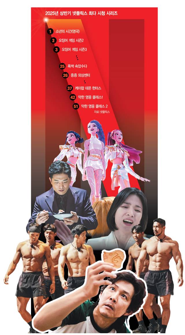 넷플릭스의 파격적인 조건 아래 K콘텐츠는 이전에 비해 질적으로도 성장했다. 막대한 제작비가 작품의 품질을 보장하지는 않지만 어느 정도 비례하는 까닭이다. 올해만 해도 ‘폭싹 속았수다’ ‘중증외상센터’ ‘악연’ ‘계시록’ ‘자백의 대가’ ‘당신이 죽였다’ ‘흑백요리사 시즌2’ ‘대홍수’ 등 글로벌 시청자를 사로잡은 작품들이 모두 넷플릭스 오리지널이다.