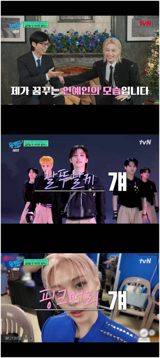 유재석, 스키즈 필릭스에 워너비 언급 "내가 되고 싶은 연예인"('유퀴즈')[순간포착]