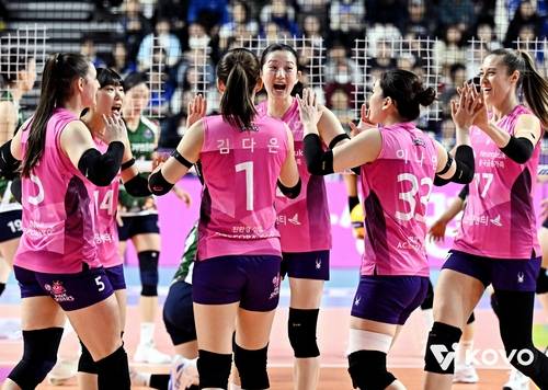 레베카·피치 쌍포 폭발…흥국생명, IBK 완파하며 3위 굳히기