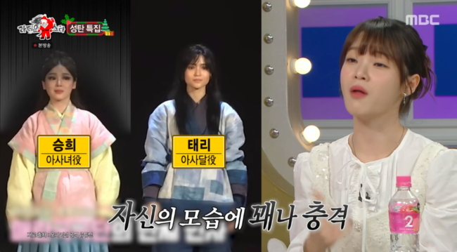 그러자 김구라는 “요즘 활동 안 하는데도 빠졌는데”라고 달라진 모습을 언급했다. 이에 승희는 “제가 ‘정년이’를 보고 진짜 충격을 먹었다. 태리언니랑 붙는 신이 많았다. 어떤 오디션 신에서는 제가 여자 역할, 언니가 남자 역할이었다"라고 말문을 열었다.