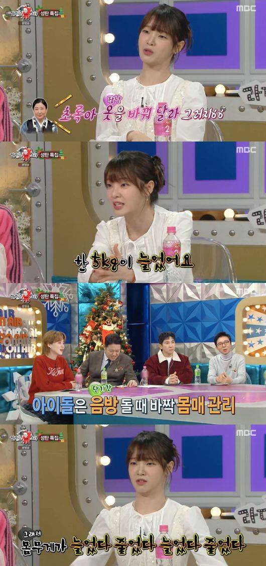 촬영 도중 5kg가 쪘다는 승희에 놀란 김구라는”뭘 그렇게 많이 먹었냐”고 물었고, 승희는 “야식을 많이 먹었다"라고 수줍게 답했다.