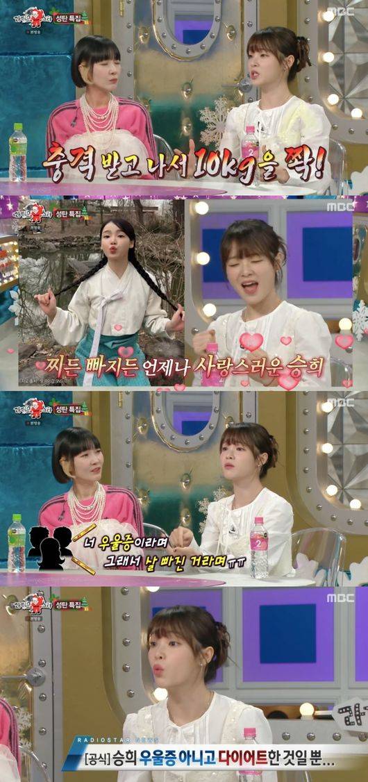 특히 승희는 10kg를 빼면서 우울증 오해를 받았었다며 "저보고 우울증이냐고 하더라. 집에 암막 커튼도 없고, 채광 너무 좋아한다. 지인들도 SNS로 너 우울증이라며 그동안 그래서 살 빠진 거라며 계속 오더라. 그래서 이 자리를 빌어서 우울증이 아니고 제 자체적으로 충격 먹어서 뺀 거다"라고 해명했다.